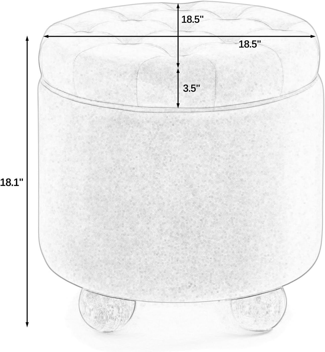 - [Perfect Size] - 18.5"Round; 18.5"D x 18.5"W x 18.1"H. Weight up to 300LBS. The footstool has solid and durable legs which can not be easy to collapsed. The storage ottoman round is also fairly lightweight, which makes it easy to move around. The foot stool also has perfect height to match your couch and you can put your feet up on it.