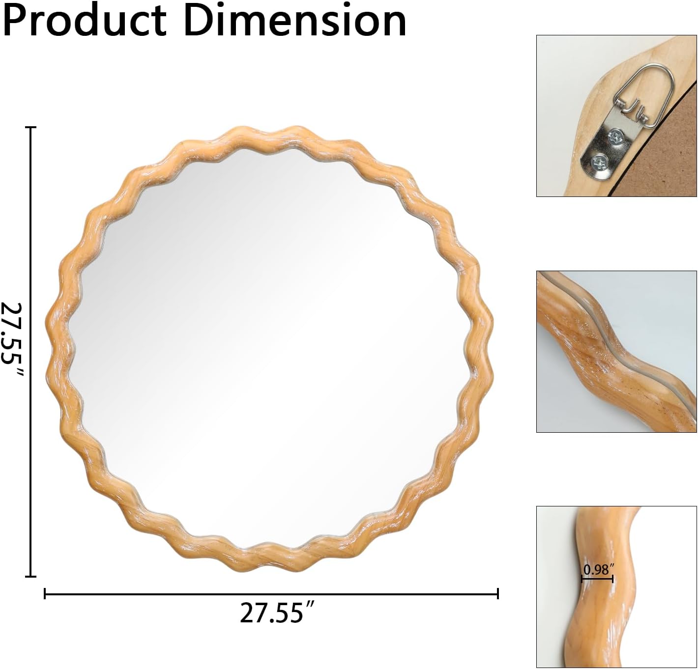- Natural Wood Frame: Built with a quality natural wood construction and rustic finish, this wavy mirror offers lasting stability and blends easily with farmhouse and traditional interiors